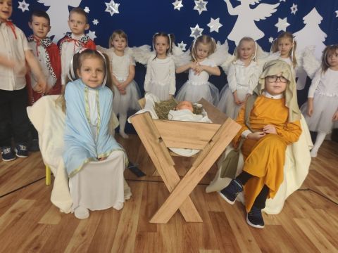 W czwartek i piątek, 18 i 19 i 20 w naszym Przedszkolu odbyły się Jasełka Bożonarodzeniowe przygotowane przez przedszkolaków. Dzieci z dużym zaangażowaniem odgrywały swoje role i przeżywały magię Świąt Bożego Narodzenia. Przedszkolaki w pięknych strojach przedstawiły historię narodzin Dzieciątka Jezus oprawioną kolędami i pastorałkami. Przepiękna scenografia nadała temu wyjątkowemu spotkaniu uroczysty i nastrojowy klimat. Małym aktorom należą się pochwały za pokonanie tremy oraz wczucie się w role. Dziecięca interpretacja narodzin Jezusa Chrystusa, kolędy, dekoracje oraz wzajemne życzenia, które zakończyły spotkanie, pozwoliły wszystkim poczuć atmosferę zbliżających się świąt, pełną ciepła, radości i bliskości. y