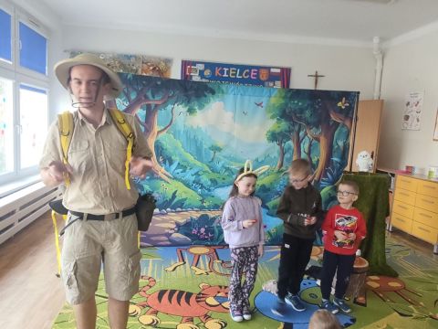 Dziś przedszkolaki miały przyjemność obejrzeć spektakl ,,Wyprawa po dobro,, Przedstawienie opowiada o podróży pewnego wędrowca – Dobromira, który wyrusza na misję ratunkową. Świat zaczyna zapominać, co to znaczy być dobrym człowiekiem. Chłopiec wyrusza w poszukiwaniu wartości: szacunku, empatii, przyjaźni, odwagi i uczciwości wprowadzając dzieci w świat wartości społecznych i emocjonalnych. Spektakl opiera się na interakcji z dziećmi, zabawie, rymowankach, pracy z emocjami i symbolami.