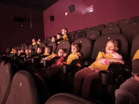 W piątek 12.12.2025 r. grypy II, III, IV i V wybrały się na wspólną wycieczkę do Kina Helios gdzie dzieci miały okazję obejrzeć bajkę pt. „Magiczna gwiazdka zwierzaków”. Seans dostarczył przedszkolakom wielu radości i pozytywnych emocji. Dzieci z dużym zainteresowaniem śledziły losy bohaterów, a wspólny wyjazd do kina było dla nich nie tylko świetną rozrywką, ale także cennym doświadczeniem kulturalnym. Wycieczka upłynęła w miłej, świątecznej atmosferze. e, a dla n