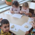 Następnie przedszkolaki lepiły bałwany z masy solnej. Ugniatanie, formowanie i łączenie elementów dostarczyło wielu wrażeń dotykowych