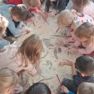 Dziś w grupie 2 odbyły się zimowe zabawy sensoryczne. Dzieci rysowały po „śniegu” z mąki, tworząc palcami i pędzelkami różnorodne wzory oraz ślady.